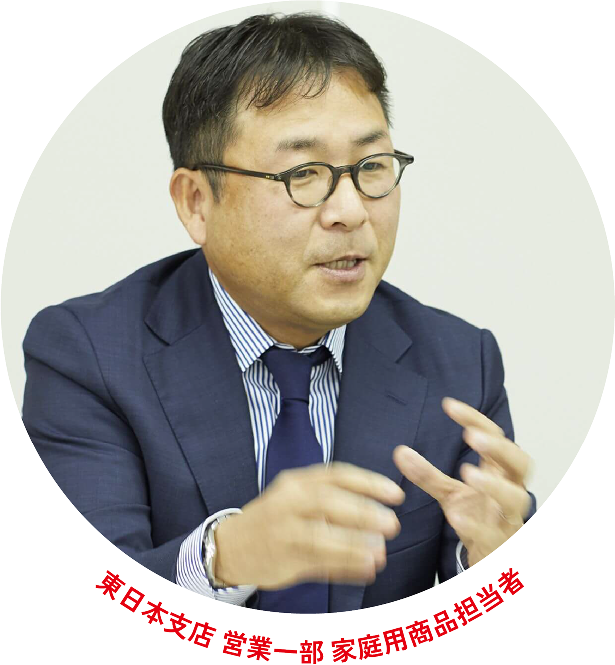 入社以来、家庭用商品の営業一筋。発売当初はバイヤーとの商談も苦労の連続だった。液体タイプではない、粒タイプの塩こうじの色は「白」だが液体塩こうじの液色は「ゴールド」。液体塩こうじを見て「これが塩こうじ?色が違う」という反応が多く、当初は説明に時間を要した。また「粒タイプの塩こうじと変わらないからいらない」と言われることも。浸透力や使い勝手の良さなど、液体だからこその特長は数多くあるのだが、導入を実現するのはそう簡単なことではない。提案に行き詰った時にヒントを得ていたのが、社内の部署横断で実施している「塩こうじ会議」。この会議では参加者全員で塩こうじをどう提案していくかを議論する場で、現在も続いている。目標は液体塩こうじをどの家庭にも1本ある調味料にすること。それだけの商品だと思う。バイヤーに何度でも説明を繰り返す。諦めはしない。先日、長く提案を続けたお客様に液体塩こうじを採用いただいた。うれしかった。だが、量販店、スーパーへの採用率100%を目指す彼にとってはあくまでも通過点だ。