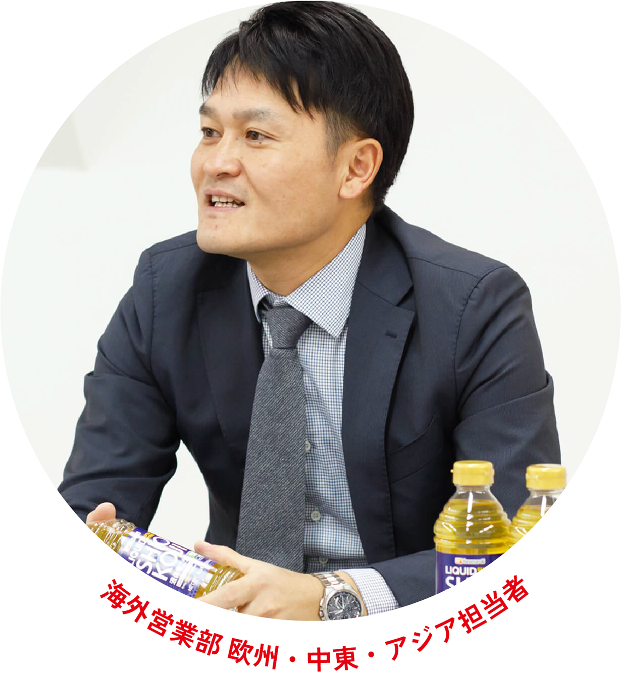 海外営業部長として、海外展開を担当。海外は、国内営業とは異なり、業務用・家庭用の区別はなく、その国・地域のあらゆるチャネルで、すべてのハナマルキ商品を扱う。「発売当 初、海外では『塩こうじ』はまったく知らない、聞いたことがない、という調味料。説明には苦労しました。その色から、油や酢と誤解されることもありました」。一方で、液体塩こうじは肉や魚の下味や味付けに使える〈汎用性の高い〉調味料であることから、国を選ばない商品。どの国にでも提案ができる。最近では、フランスやイタリアの一流シェフが絶賛し、世界の食品メーカー、レストランでの採用が始まっている。印象的なエピソードとして、欧州のあるシェフにSNSで液体塩こうじを紹介いただいたことがあった。その惚れこみようを見て驚き、自信を深めたと語る。この商品は世界で通用する。現地のメインストリームで日常的に使用される調味料にもなる。世界中に広がる姿を自分の目で見たい」。世界への挑戦は始まったばかりだ。