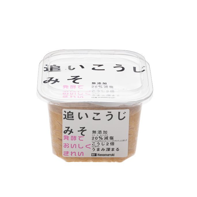追いこうじみそのパッケージデザインは、約30案の中から検討した。事前にデザインを調査にかけたところ、票を集めたのは、デザインはきれいだけど、いわゆる今までの「みそらしい」デザイン。これでは「私たちがこの商品に込めた覚悟が伝わらないのではないか」「店頭ではっきりと差別化できるデザインがいいのではないか」という結論に至り、これまでにないシンプルで斬新なパッケージデザインを採用した。今ではこのデザインが好評で、追いこうじみその存在感を高めている。