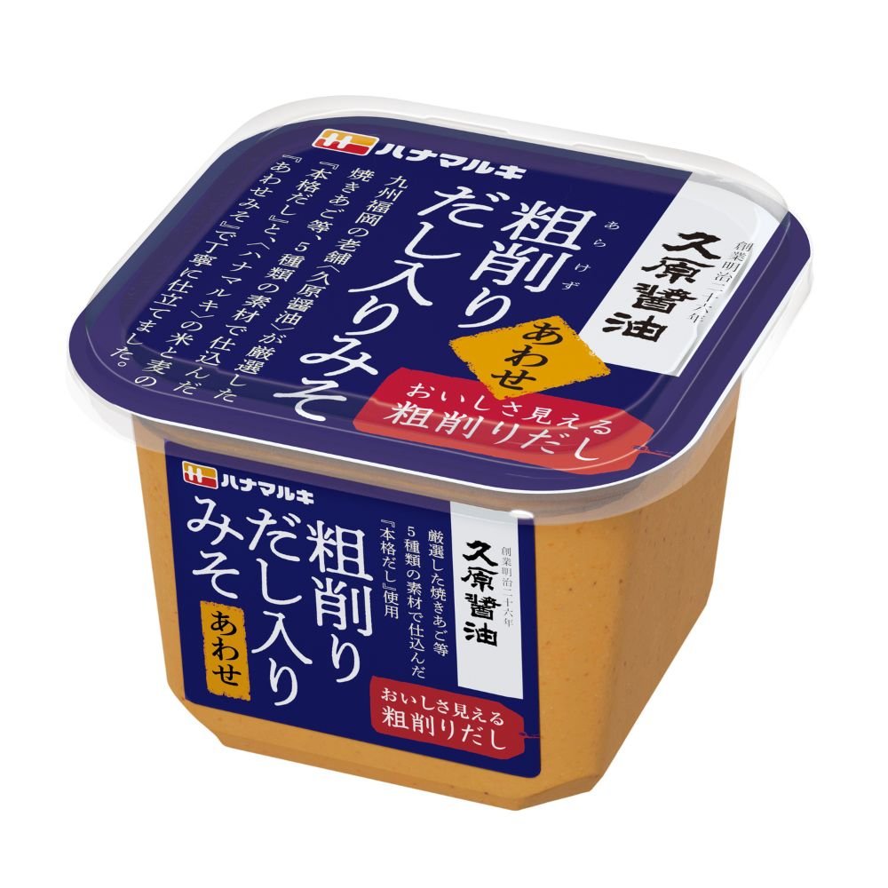 だし入りみそに、更に顆粒だしを足しているというお客様の声をキャッチし、だしにとことんこだわった「粗削りだし入りみそ」を開発しました。九州福岡の老舗「久原醤油」が厳選した本格だしを使用していますので、顆粒だしを追加いただかなくても十分だし感を味わっていただけます。