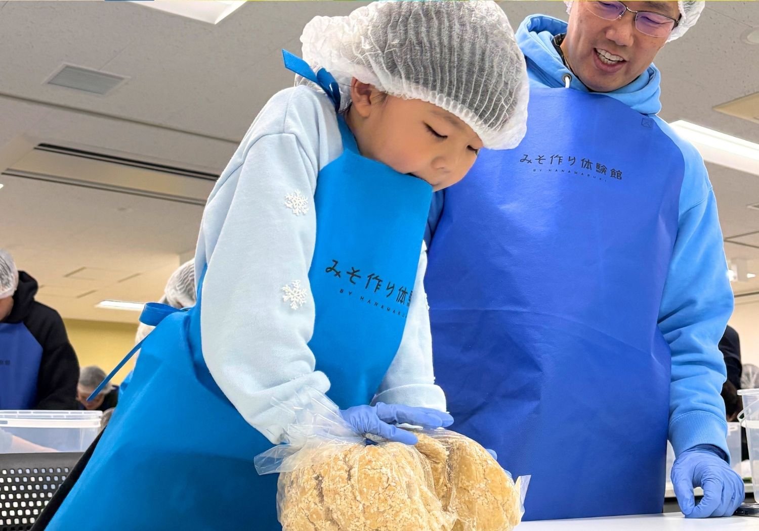 当日は、長野県伊那市のハナマルキ「みそ作り体験館」でしか体験できない特別プログラムを実施。事前予約で満員となった親子連れを中心とする約40組のお客様が、発酵のメカニズムを学びながら、自分だけのみそ作りに挑戦しました。