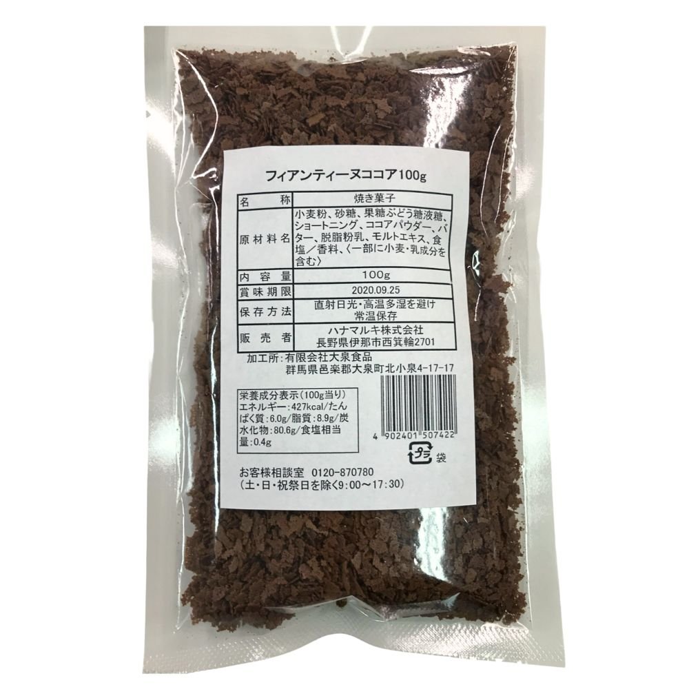 サクサクした軽い食感に焼き上げたココアの生地を使いやすいフレーク状にしました。店舗調理で使いやすい100gの個包装タイプです。