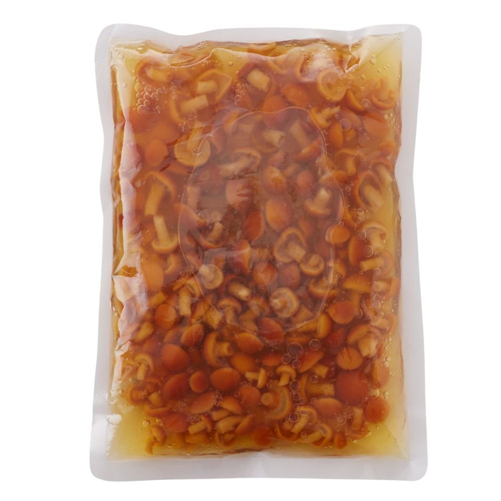 粒よりのなめこをレトルト加工。なめこ本来の風味、適度のぬめりを残し、色鮮やかでぷりっとした食感に仕上げました。