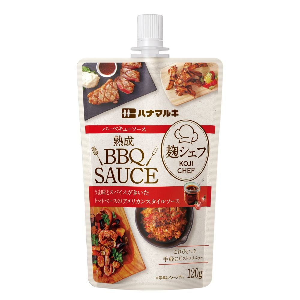 トマトケチャップに「液体塩こうじ」をブレンドすることで、うま味の強いアメリカンスタイルのバーベキューソースに仕上げました。使いやすい120gです。