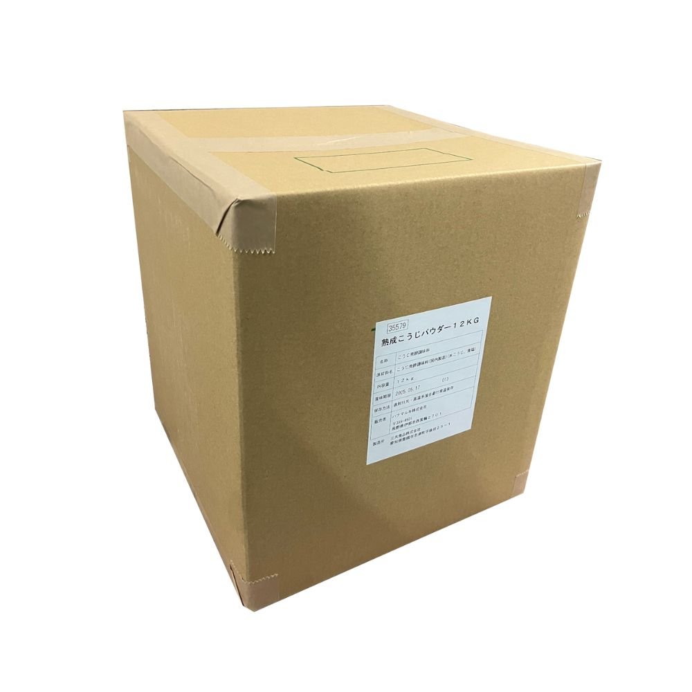 丁寧に発酵熟成させた塩こうじを特許製法で加熱乾燥、粉末化した発酵調味料。大口加工用・業務用ユーザー向け大容量12kg入りです。