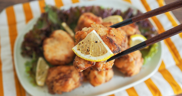 液体塩こうじがお肉を柔らかく仕上げ、少ない調味料でも味が決まる!レモンが効いたさっぱり食べられる唐揚げです。黒こしょうでパンチもあるので食べ応え◎