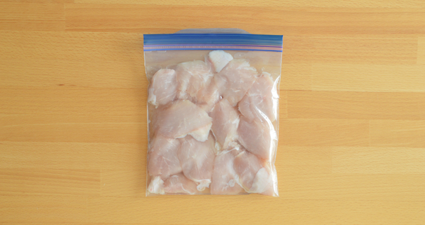 - 袋にひと口大に切った鶏もも肉と【A】を入れ、よく揉みこみ、冷蔵庫で30分~1時間漬け込む。
