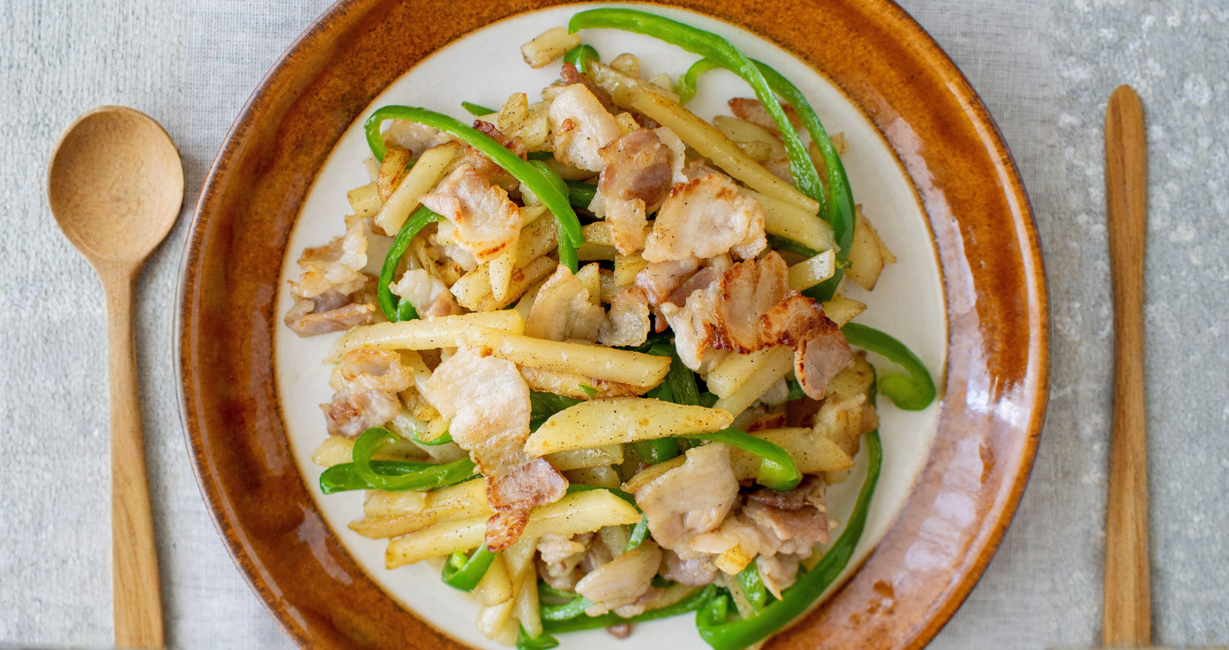- 豚バラ肉とじゃがいもの塩こうじ炒め☀