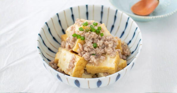 - 合挽き肉を加えて炒め、色が変わったら厚揚げを入れてさっと炒める。
