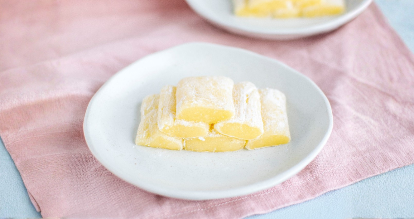 バター餅は北秋田で人気の餅菓子で、時間がたっても硬くなりにくく、ほんのり黄色くて柔らかい食感が特徴です!