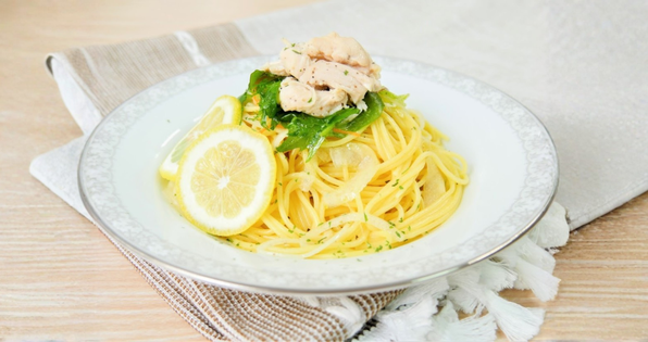 - 器に盛り付け、レモンの輪切りを飾る。