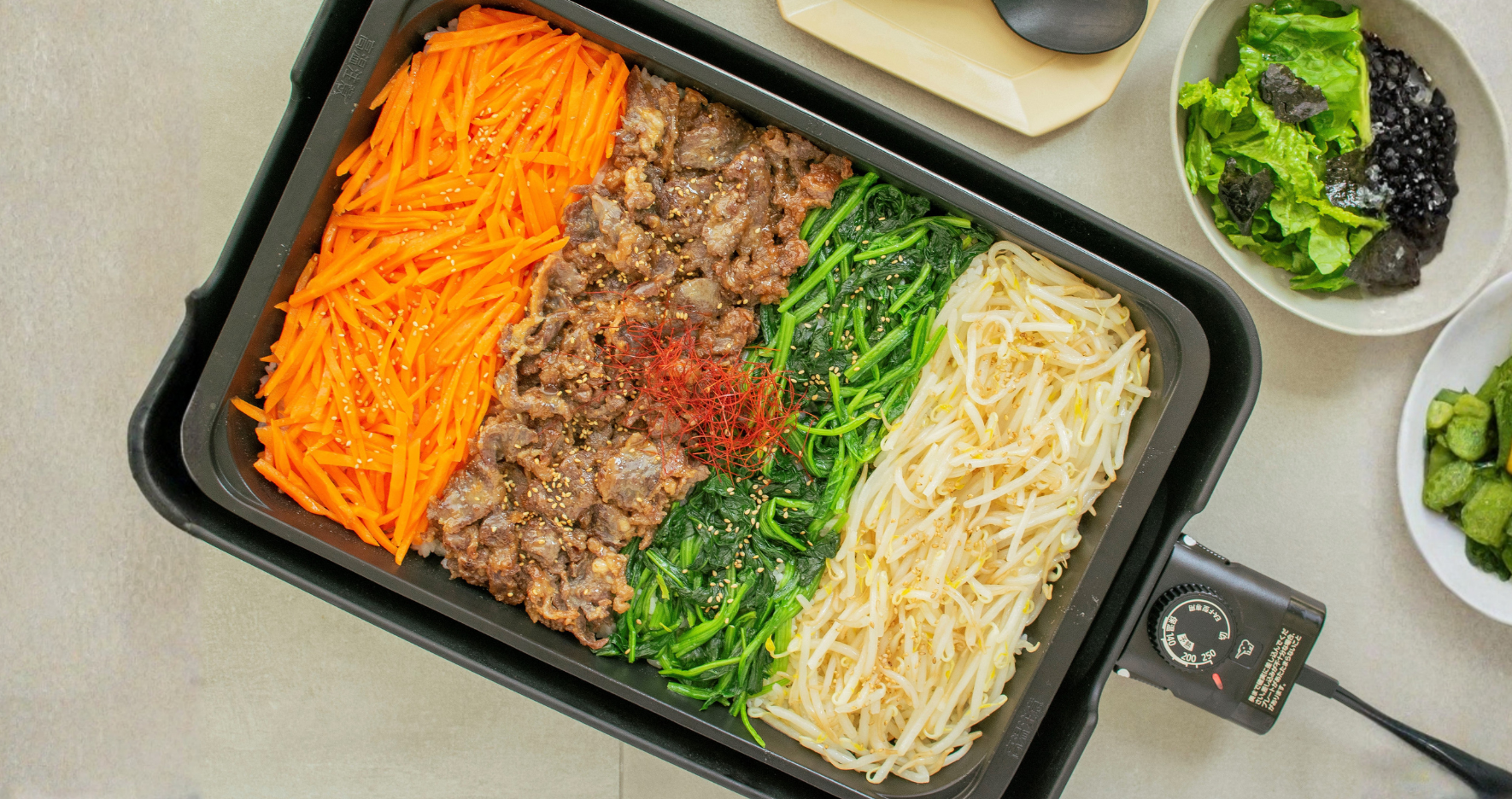 - お好みで糸唐辛子やコチュジャンを添える。