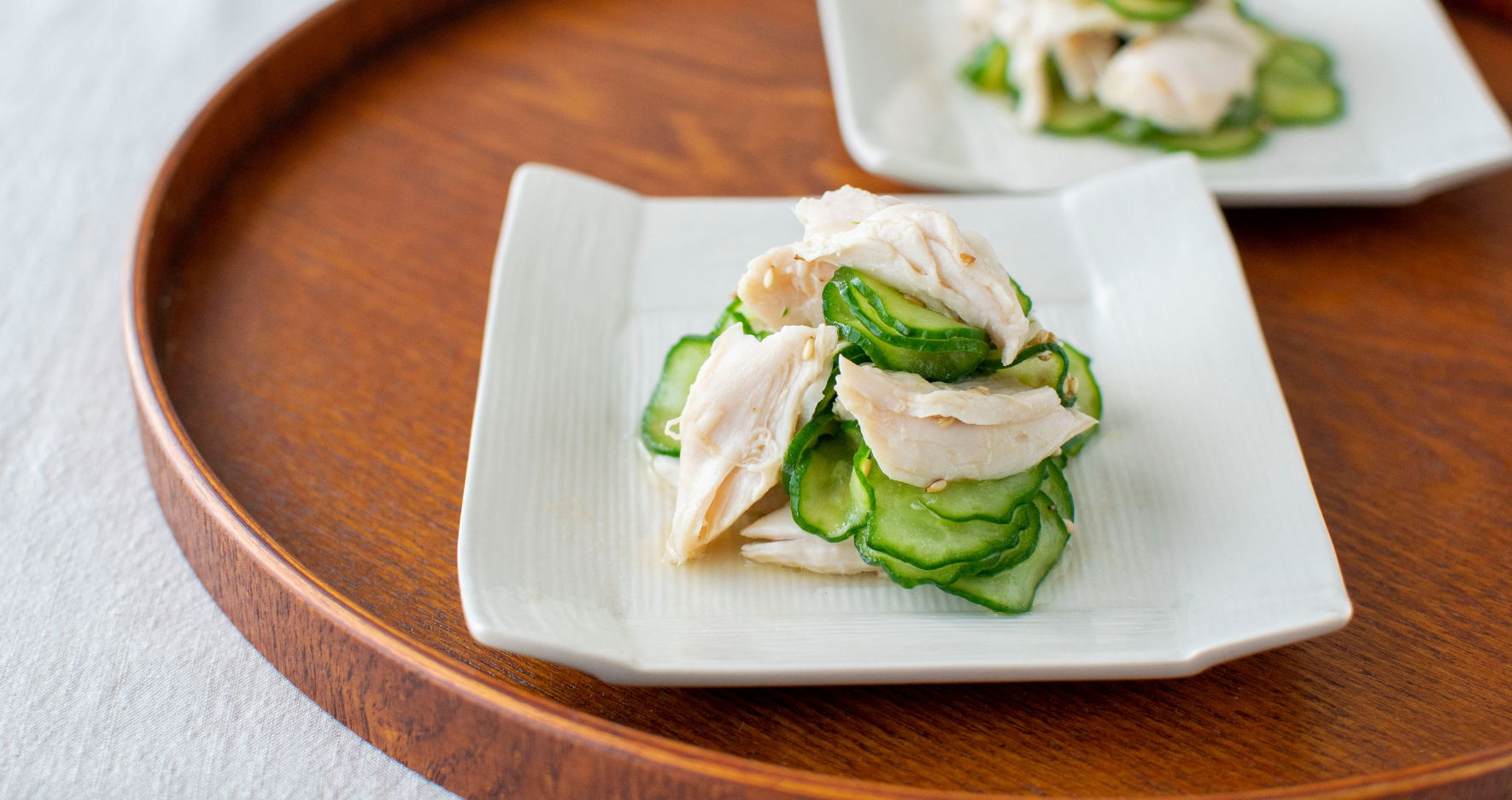 - 柔らか鶏ささみときゅうりの黒酢和え
