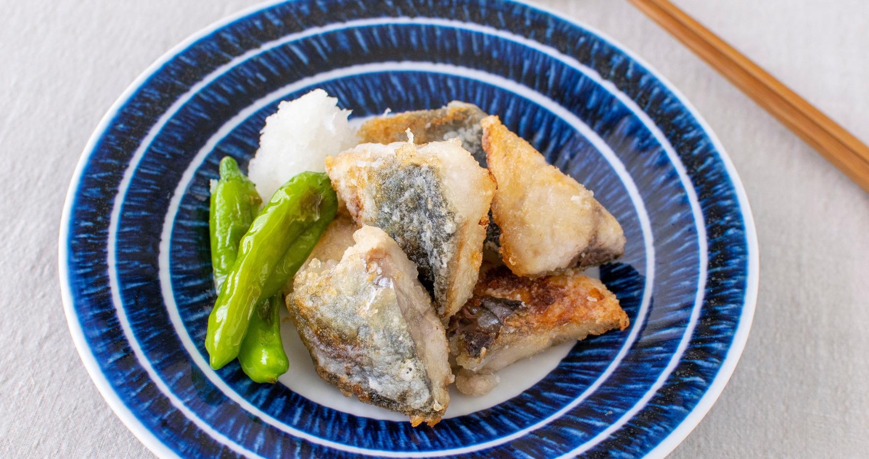 - 器に④を盛り付け、大根おろしを添える。