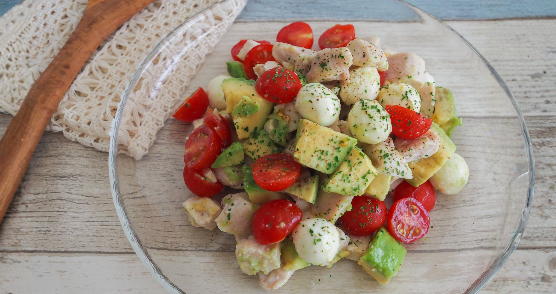 - ミニトマトは半分、アボカド、チーズは一口大に切る。